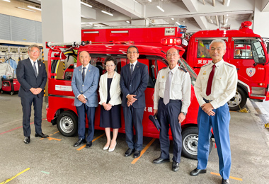 京橋消防団第3分団へ可搬式ポンプ積載車の寄贈